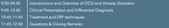 - A comprehensive understanding of OCD and anxiety disorders and how to perform a differential diagnosis between them